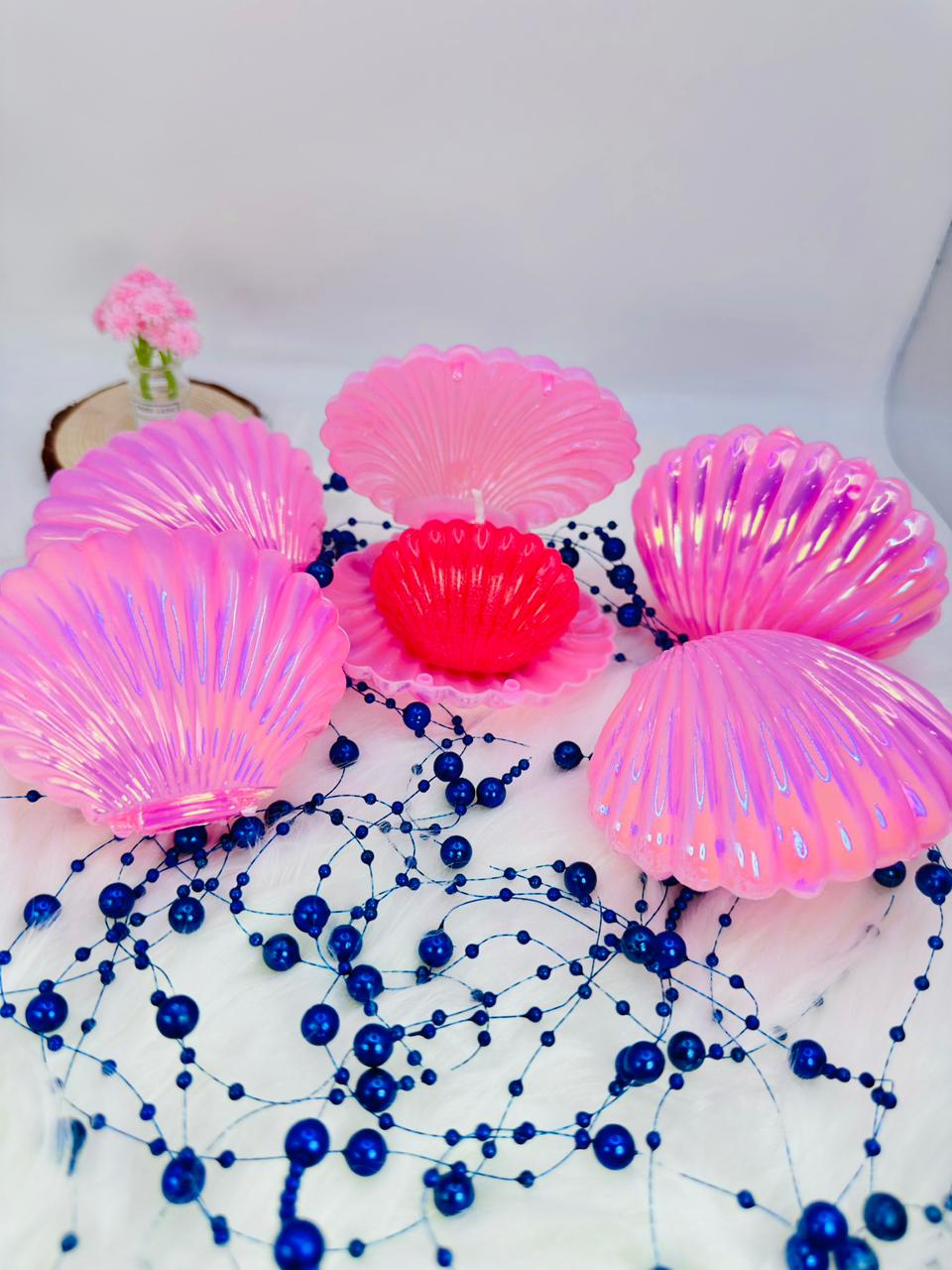 Inspired by delicate seashell treasures, this handcrafted candle features a soft pearl pink tone with a luminous iridescent shimmer ✨