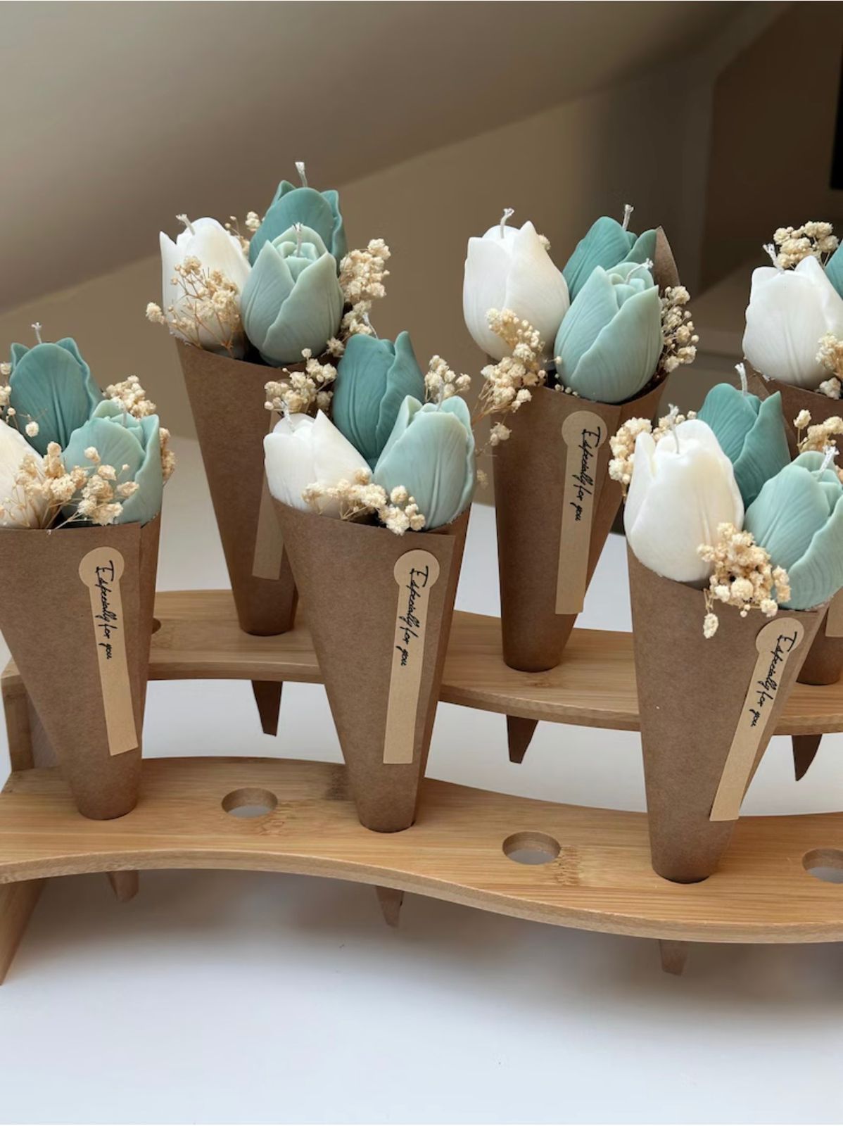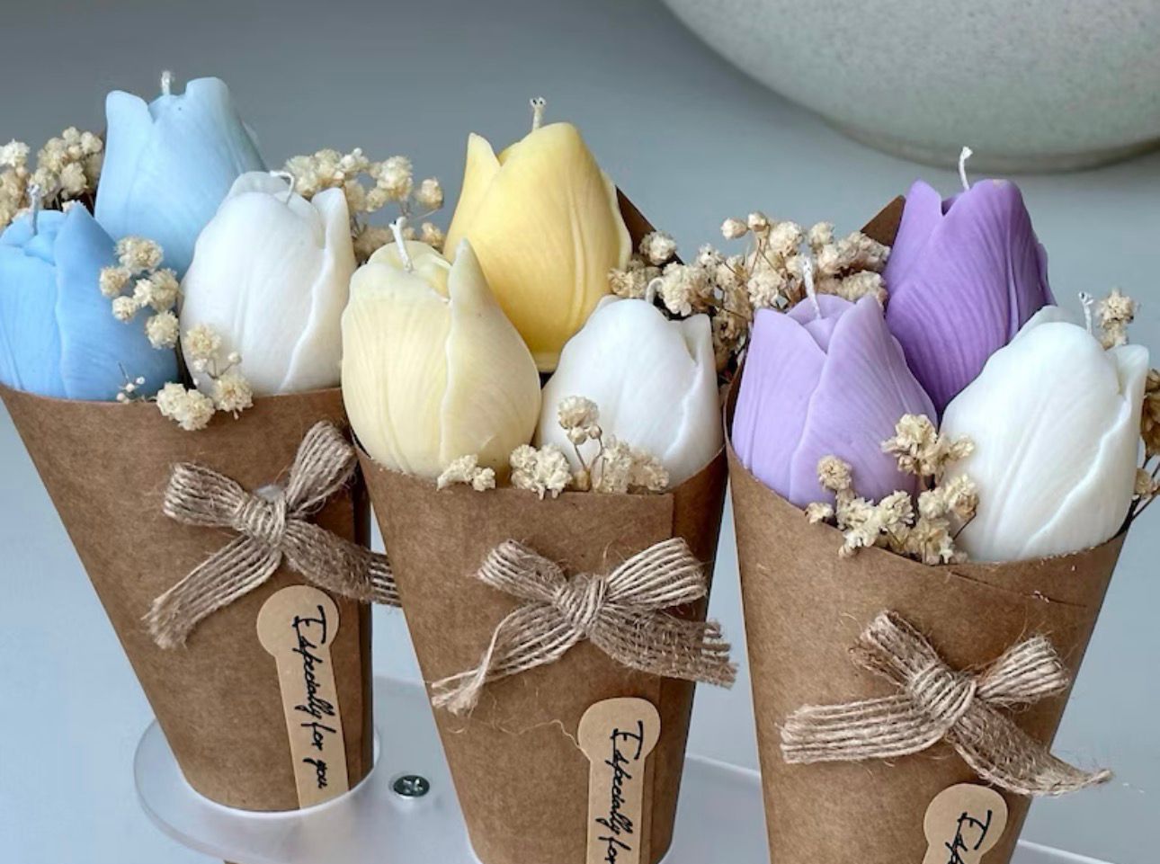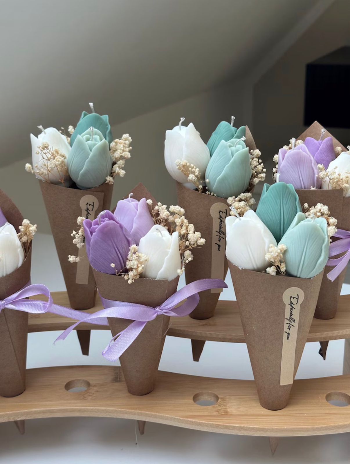Luméva Tulip Candle Bouquet is a handcrafted candle bouquet designed to look like a real bouquet of flowers while offering the warm glow of candles. Made from environmentally friendly soy wax, this elegant tulip bouquet is both a decorative piece and a thoughtful gift.Lumeva Tulip Candle Bouquet